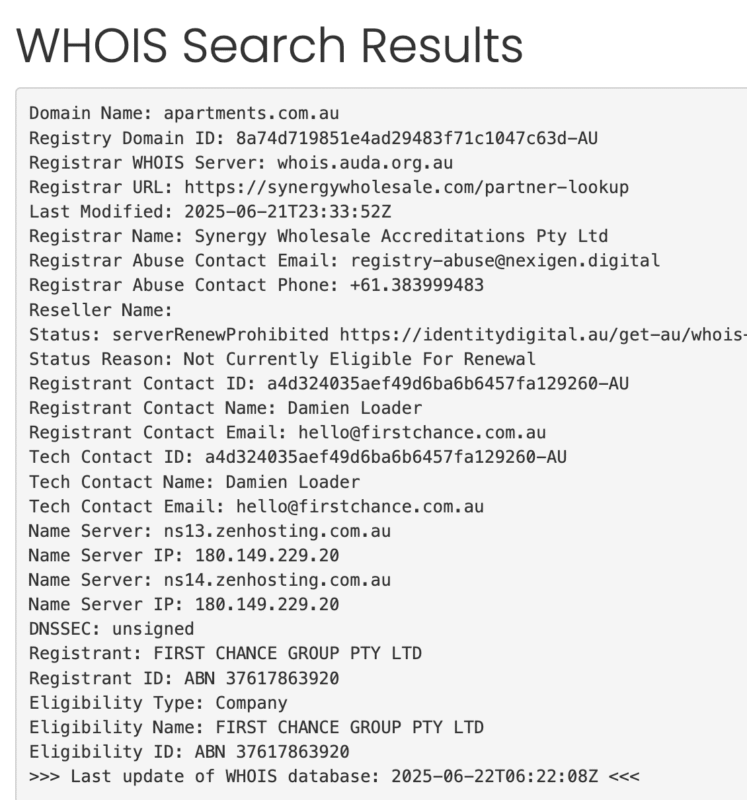 “Apartments.com.au is without question a top-10 domain sale in Australia,” he said. “It belongs in the same tier as Bitcoin.com.au and Money.com.au.”