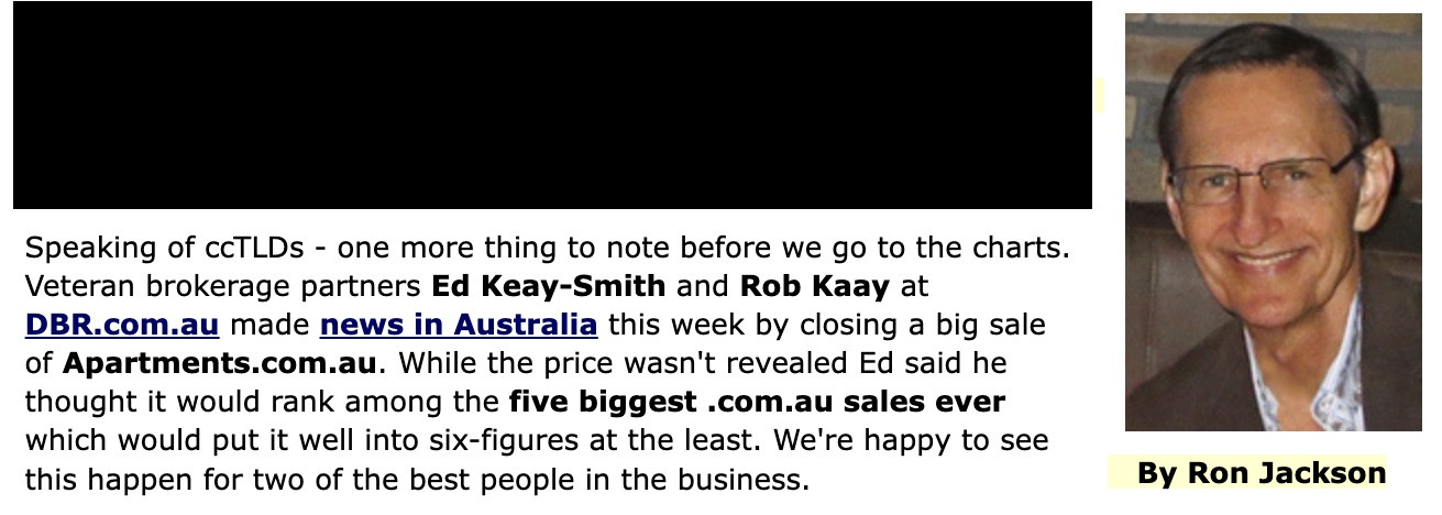 Shoutout to the international OG Legend Mr Ron Jackson over at DN Journal for mentioning this massive Apartments.com.au sale – https://www.dnjournal.com/archive/domainsales/2025/0723.htm